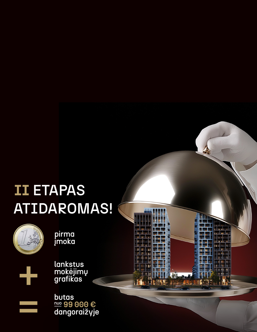 Patirti dangoraižio efektą. Holas kiekviename bokšte – tranzicija iš darbų į namus, iš namų į pramogas. Tūriu ir aukščiu įspūdingą erdvę užpildo autorinis menas skulptūros pavidalu, ilgaamžės akmens masės grindų plytelės, led apšvietimas.