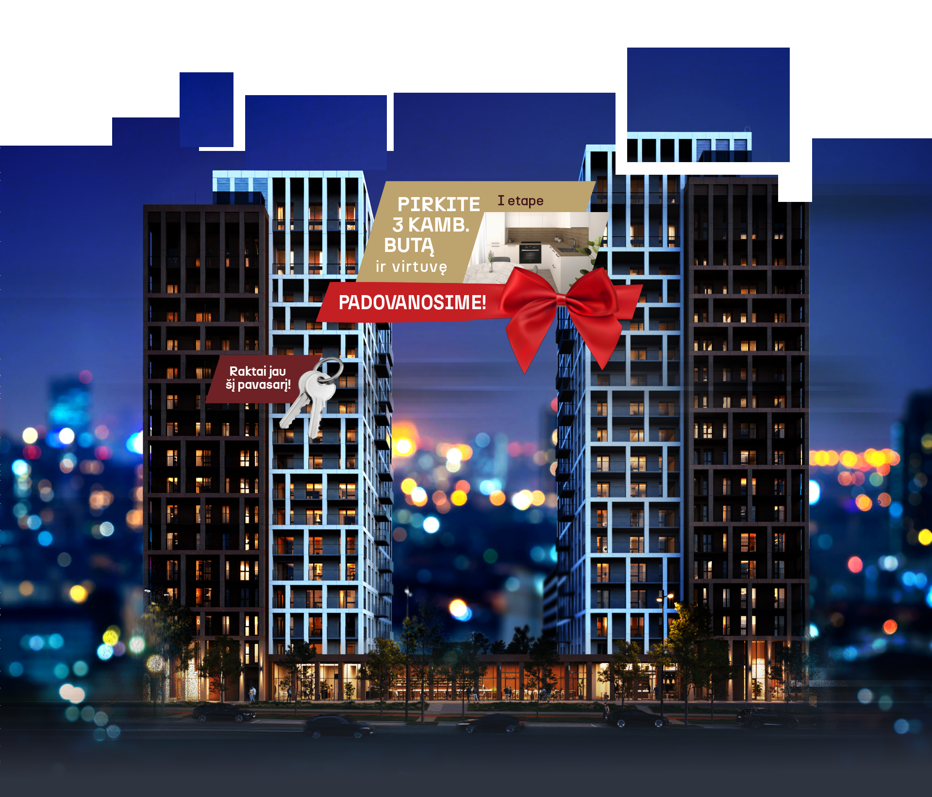 Patirti dangoraižio efektą. Holas kiekviename bokšte – tranzicija iš darbų į namus, iš namų į pramogas. Tūriu ir aukščiu įspūdingą erdvę užpildo autorinis menas skulptūros pavidalu, ilgaamžės akmens masės grindų plytelės, led apšvietimas.